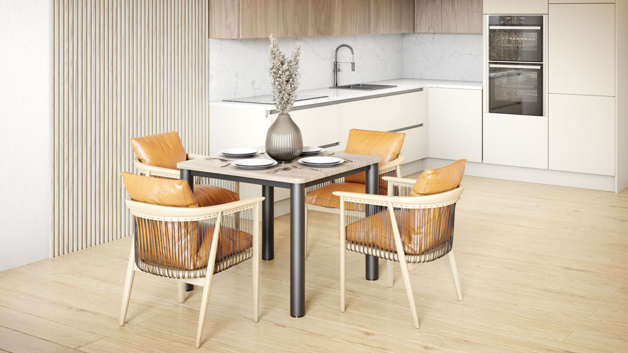 Picioarele KOTA ø80 sunt fabricate din tuburi rotunde și reprezintă o soluție structurală care îmbină eleganța cu performanța. În combinație cu conectorii KOTA, ele formează o bază de masă stabilă și plăcută din punct de vedere estetic.
