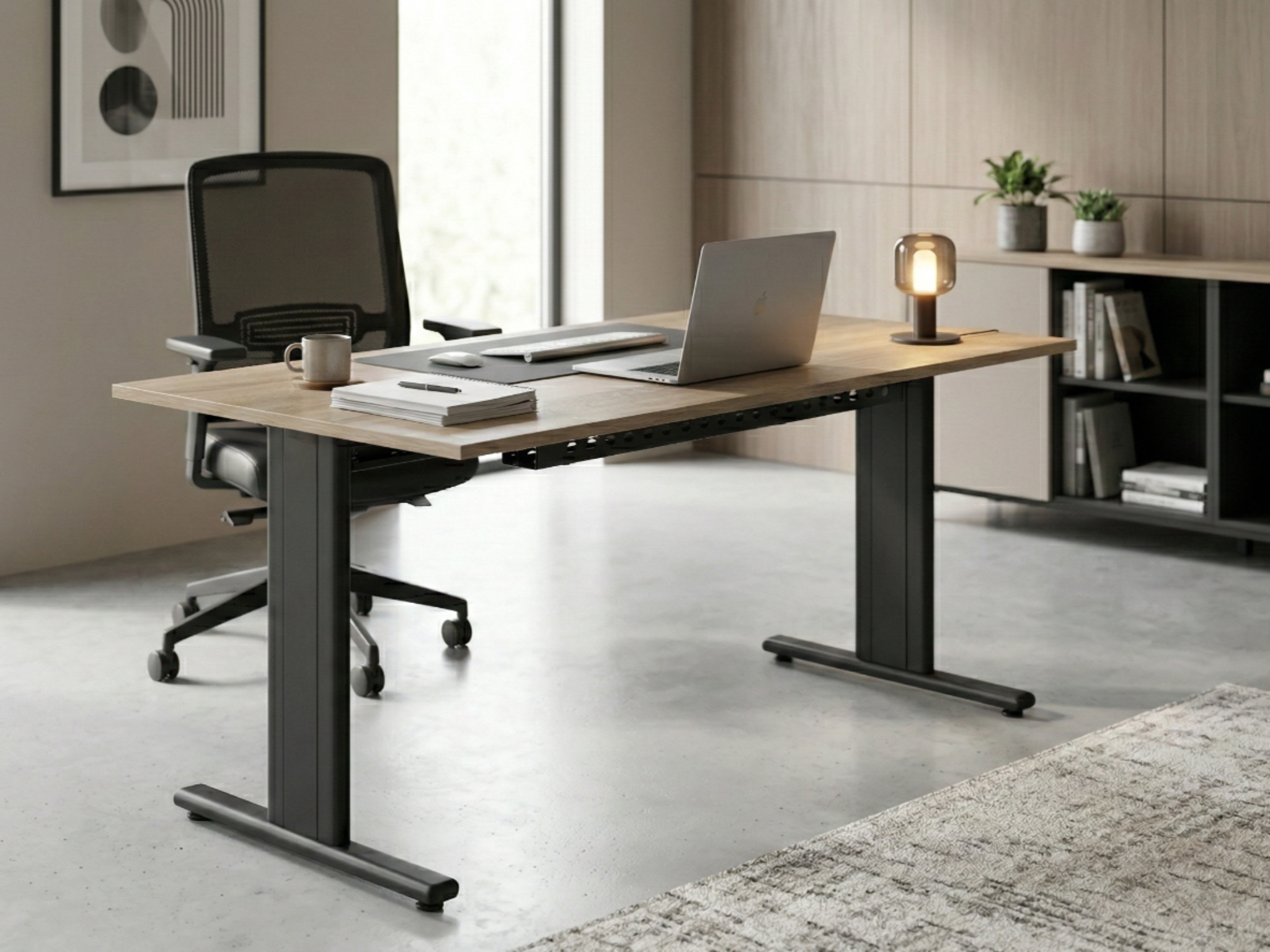 Masa de birou cu cadru metalic și blat din PAL