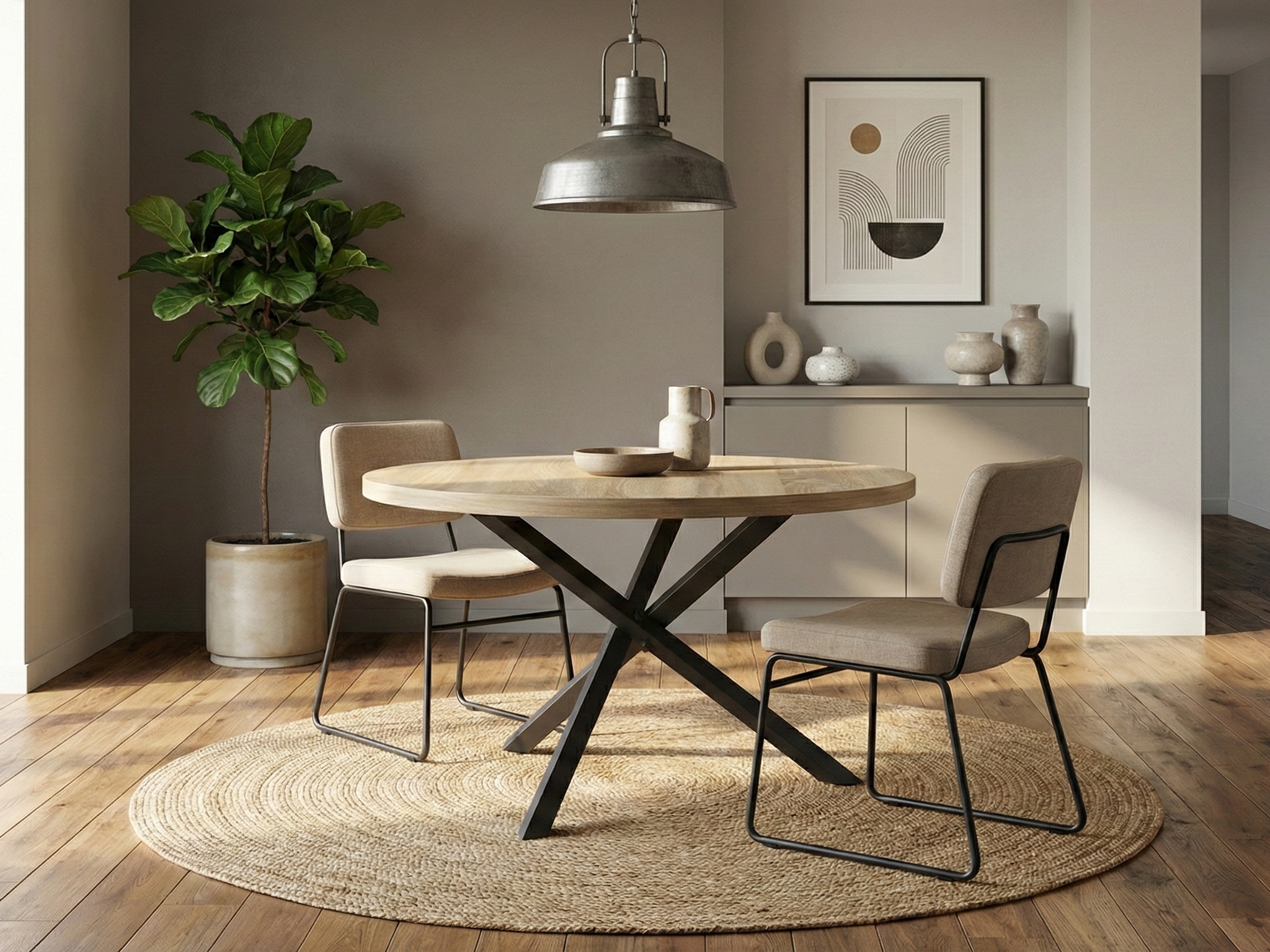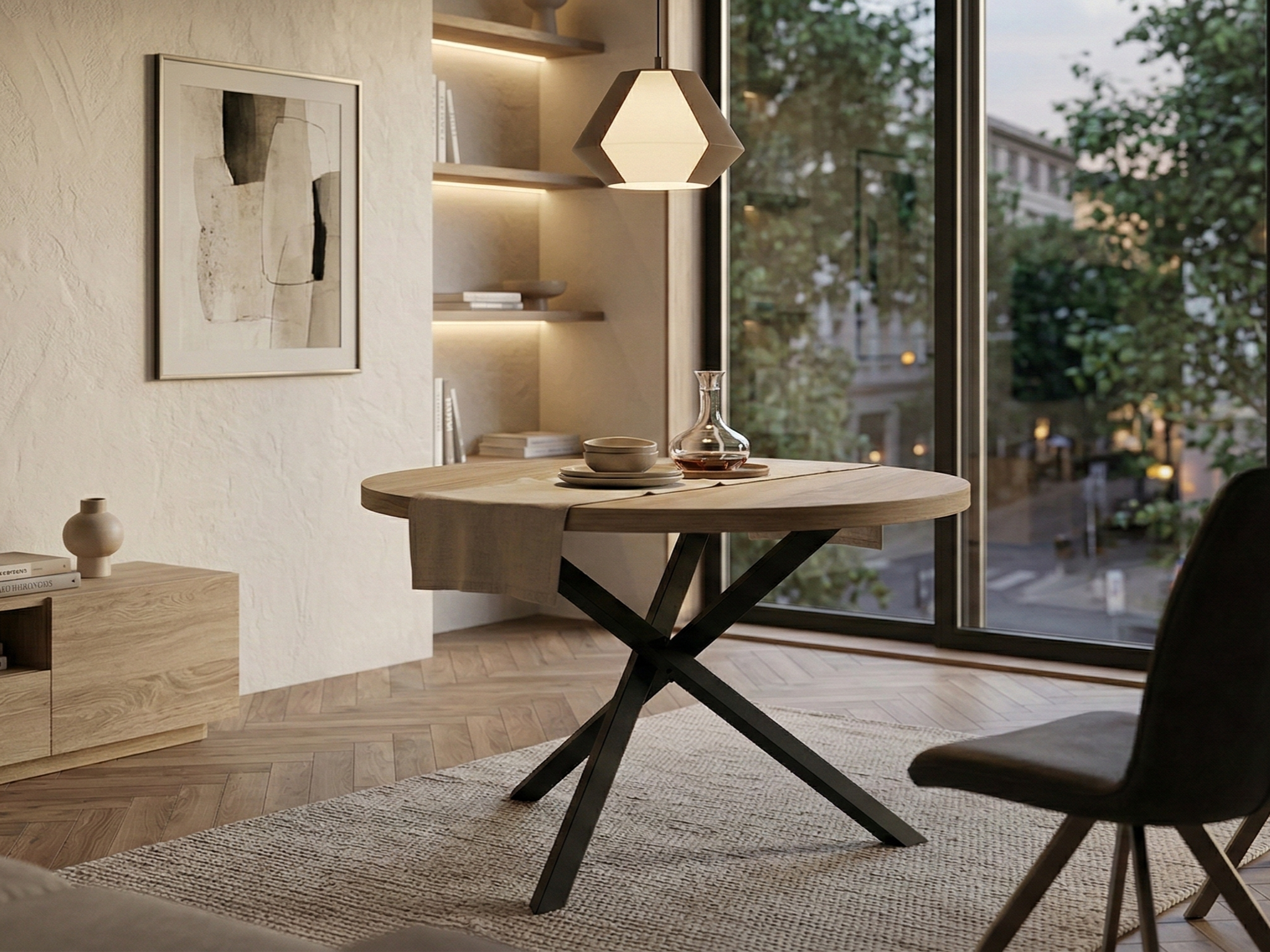 Masă Tripod este formată din cadru metalic și blat din PAL cu grosimi de 18 și 36 mm.